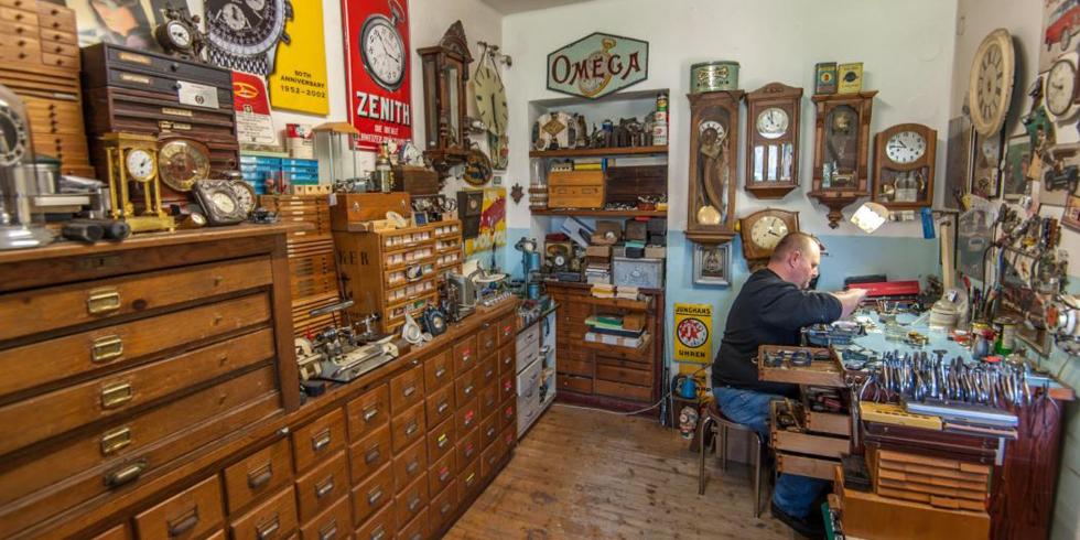 Service und Kundenkontakt sind ihm wichtig. Reparatur, Beratung, ja sogar Sonderanfertigungen gehören zu seinem Repertoire. Das Gespür für die richtige Uhr für eine Person machte sich Loidold durch jahrelange Erfahrung zu eigen. 'Manche Menschen brauchen keinen Sekundenzeiger', lächelt er. Über Besuch freut er sich immer. 'Manchmal gehe ich mit Kunden auf ein Eis in die Diele nebenan. Oder man setzt sich auf die Wiese am Fluß'.